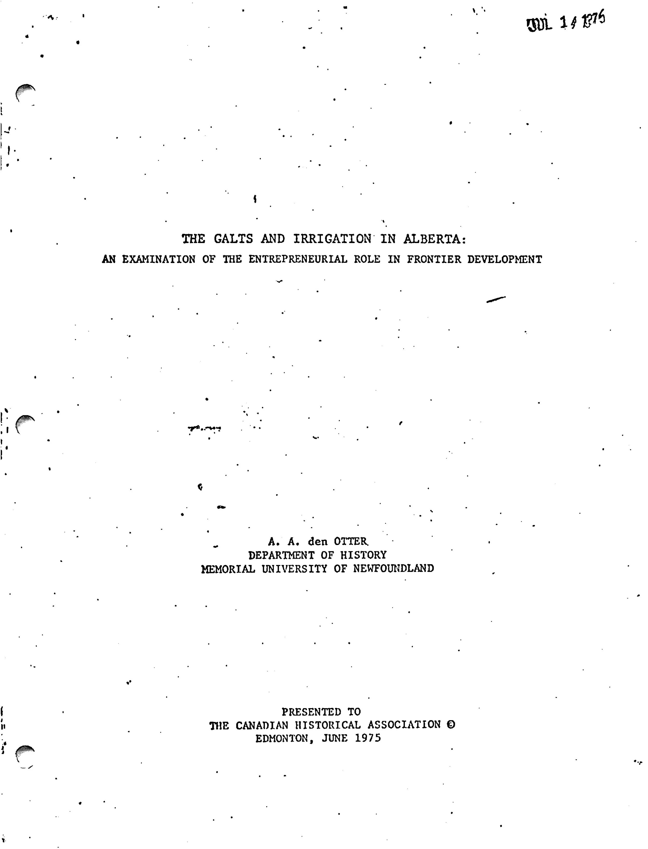 By A. A. den Otter, Department of History, Memorial University of Newfoundland